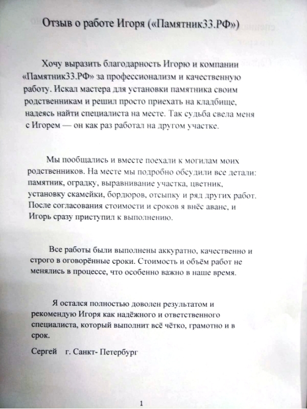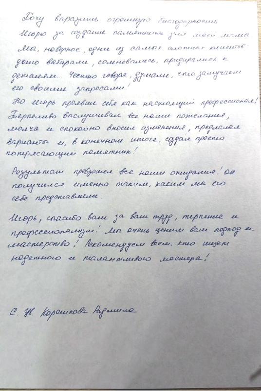 Выбирая нашу компанию, вы выбираете профессиональный подход, качество и надежность. Мы гарантируем, что наш гранитный памятник станет достойным и прочным символом вашей памяти о близком человеке на долгие годы.