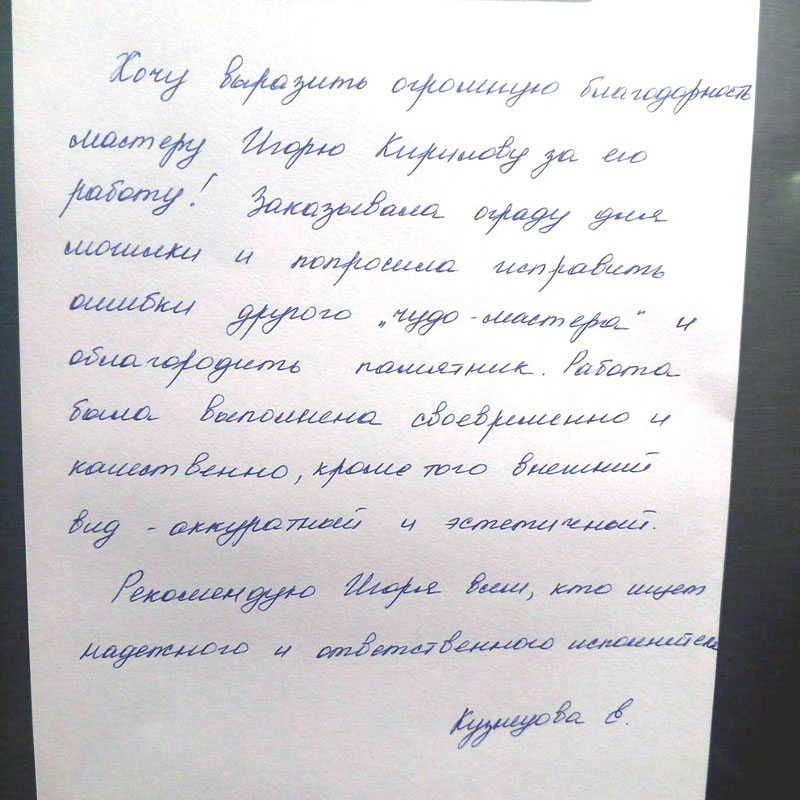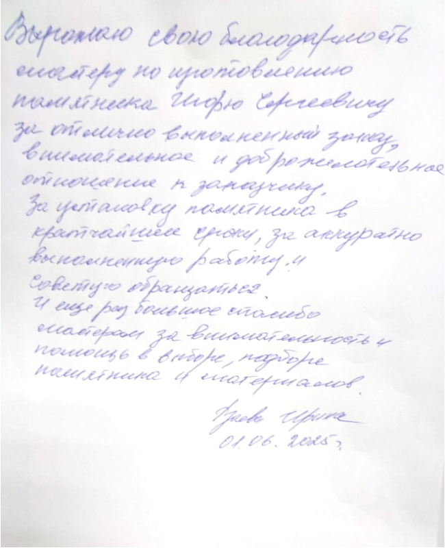 Наша команда профессионалов состоит из опытных дизайнеров и опытных мастеров, которые сделают все возможное, чтобы ваш памятник был выполнен именно так, как вы себе его представляете. Мы уделяем внимание каждой детали и стремимся к тому, чтобы наше изделие было не просто статичным куском камня, а настоящим произведением искусства.